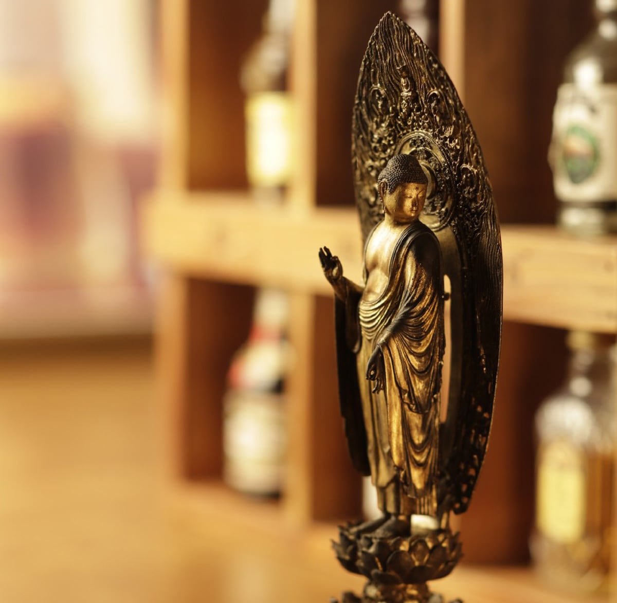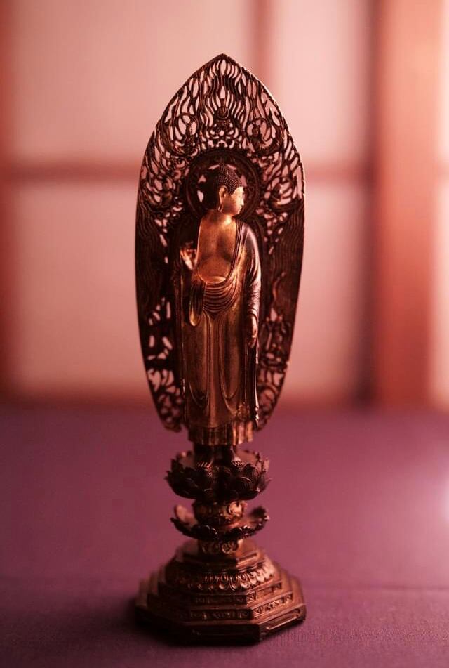 イスムでは像全体から醸し出される穏やかで気高い雰囲気を重視して制作。総高はわずか19センチながら透かし彫りの見事な光背を完全に再現しました。
