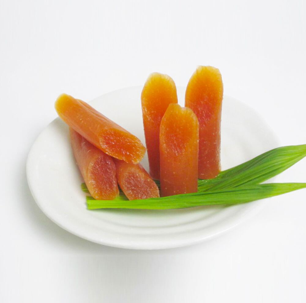 生の守口だいこんから、塩漬け2回、酒かす漬け4回を繰り返し2年以上の歳月をかけて製造します。根気のいる作業を経て穏やかな甘さとかりかりとした歯ごたえになり、つややかなべっこう色となります。杉樽を使うことで仕上がりも格段によくなります。